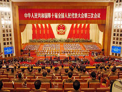 九日半に亙って開かれた中國の國家最高権力機関である第十期全國人民代表大會第三回の年次総會が今日北京で閉幕した。閉幕に先立って、「反國家分裂法」が可決されたほか、全人代代表たちの審議修正を経た《政府活動報告》も承認された。