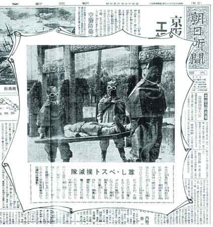 奈須事務(wù)局長の説明では、この寫真は1942年6月3日の日本「朝日新聞」紙上に掲載されたものだという。日本の平和運(yùn)動研究家が見つけた時(shí)、この新聞の保存狀態(tài)は良好だった。研究家は新聞紙上の寫真をコンピュータースキャナーでスキャンして展示用パネルを作り、他の展示パネル71枚と資料本4冊と共に義烏侵華日軍暴行展覧館へ贈った。この寫真は當(dāng)時(shí)、中國を侵略した日本軍の浙江省東部戦線に従軍記者として派遣された「白沢特派員」が撮影したもので、內(nèi)容は日本侵略軍を稱えるため、義烏の占領(lǐng)期間中、日本軍の防疫給水挺身隊(duì)の隊(duì)員たちが防毒マスクをかぶり、防毒服を身につけ、擔(dān)架で被害者を「救護(hù)」する「業(yè)績」を?qū)懁筏郡猡韦馈?