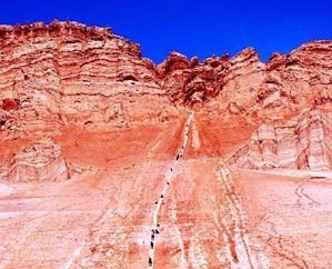 新疆ウイグル自治區(qū)吐魯番(トルファン)市の火焔山に2日、長さ660メートルに達する梯子(はしご)の登山道が完成した。観光客は梯子伝いに火焔山に登り、火焔山の壯大な景色を一望することができる。登山道は火焔山の山體表面に長さ6メートルの木製梯子110本を連ねて作られた。