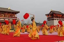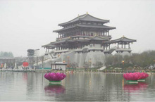 かつて「長(zhǎng)安」として知られた古都?西安市に11日、唐代の様式を再現(xiàn)した中國(guó)初の庭園型テーマパーク「大唐芙蓉園」がオープンした。