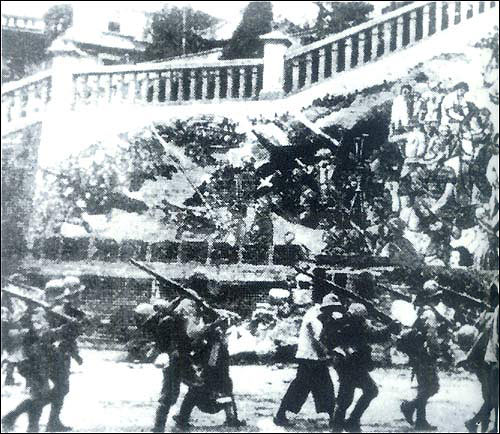 1938年10月25日、漢口失陥。寫真は漢口に入る日本軍