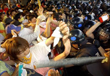 韓國(guó)首都ソウル市の米軍基地付近で29日、韓國(guó)の學(xué)生約2千人が反米?反戦デモを行い、米國(guó)が発動(dòng)したイラク戦爭(zhēng)に抗議し、韓國(guó)からの米軍撤退を求めた。デモ參加者と機(jī)動(dòng)隊(duì)が衝突する場(chǎng)面もあった。