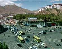 西蔵(チベット)自治區(qū)が設(shè)立されて以來、同自治區(qū)拉薩(ラサ)市の景観は日々変化している。中心部道路の総延長は、西蔵自治區(qū)が平和開放された1951年には1キロだったが、現(xiàn)在では241キロに増加した。また、自動車保有臺數(shù)も年々増加している。04年末現(xiàn)在、拉薩市のマイカー所有率は平均23人に1臺となり、全國平均水準(zhǔn)の5倍以上に達(dá)している。市全體の公共バスは770臺以上、タクシーは1200臺前後に抑えられている。
