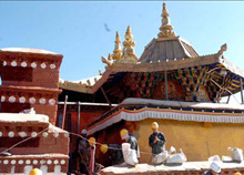 この殿閣は300年以上の歴史を持つ。布達(dá)拉宮の紅宮(ポタン?マルポ)1階中央の西大殿の西側(cè)に位置し、建築面積は約450平方メートルあまり。外観は4階に分かれているが、內(nèi)部は高さ11.27メートルの吹き抜けになっているため、修繕には高い技術(shù)が要求される。関連部門は修繕工事に當(dāng)たり、実地調(diào)査と考証を繰り返して厳密かつ科學(xué)的な修繕プランを決定した。工事は7月中にすべて完了する見通し。