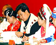 朱鎔基総理の「政府活動(dòng)報(bào)告」についての討論に花を咲かせる代表たち。