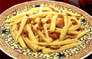 2、タマゴの白みを入れてよく混ぜ、更にマントーの切れをつけて、扇子の形のようなトリ肉をなかば熱した油のナベの中に入れて熟するまで揚(yáng)げてすくい取り、油が熱するまで、こがね色になるまで揚(yáng)げてすくい取って油をきり、お皿に盛り付け、サンショウの粉をかけて出來上がりとなる。