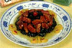 4、ハスの実を碗の中に入れ、周りにナツメの砂糖漬けを並べ、ヒツジの肉を上に置いて、白砂糖をかけ、せいろうで3時(shí)間ほど蒸してから、お皿の中に入れて、煮詰めたハチミツをその上にかけて出來上がりとなる。