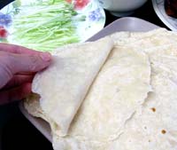 Тоненькая кожица утки – хрустящая и вкусная, но большинство любит есть утятину, завернутую в блин. Делается это так: взяв тонкий блинчик, обмазывают его соевым соусом, кладут два-три кусочка утятины, несколько стручков лука-порея, кусочки тонко нарезанного огурца и заворачивают все это в трубочку. Откусив от такого блинчика с начинкой, сразу ощущаешь, как это необыкновенно вкусно! Затем подают суп, изготовленный из остова утки. Суп этот имеет молочный цвет и источает нежный аромат, а, если к этим двум блюдам еще добавить различные закуски, то такая трапеза будет верхом блаженства!