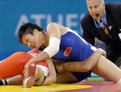 Китаянка Ван Сюй завоевала золотую медаль по вольной борьбе на Афинской олимпиаде-2004