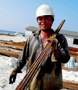 На снимках: работники из китайской провинции Чжэцзян рука об руку с местными жителями восстанавливают территорию после разрушительного цунами.