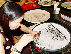 ?Кэцы? - фарфор, обработанный природным алмазом. Мастера вырезают на фарфоре иероглифы, пейзажи, птиц и т.д. Резьба делается по особой технологии.