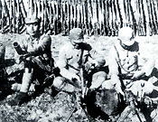 Се Цзиньюань и его подчиненные. Китайские войска ожесточенно сражались с японскими оккупантами, атаковавшими 13 августа 1937 года Шанхай