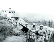 Китайские войска сражаются с японскими отрядами на перевале Нянцзыгуань