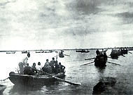 Бойцы Сопротивления бесшумно пересекают озеро Байяндянь, провинция Хэбэй