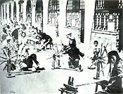 Соревнование ткачих - членов женского производственного кооператива в Яньани
