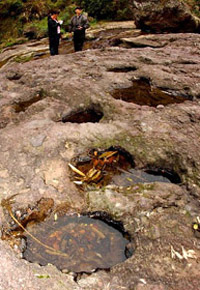 Как пояснили нашему корреспонденту на месте гляциологи, в этом месте в долине реки Ваньмаду, которая тянется на 3 километра, обнаружены огромные ледниковые валуны, межи из ледниковых отложений и другие памятники этой эпохи. На огромных ледниковых валунах -- множество ледяных ступ, а в долине реки -- масштабные каменные площадки. Этим памятникам 2-3 млн лет. Они представляют колоссальную научную ценность для мировой науки.