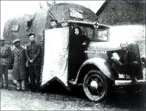 Передвижной медпункт и вымпел в дар 8-й армии от сянганских водителей.