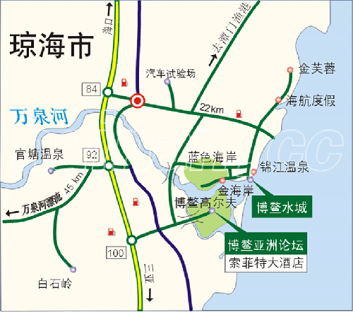 Географическая карта г. Цюнхай провинции Хайнань, где проводится Боаоский азиатский форум 2005.