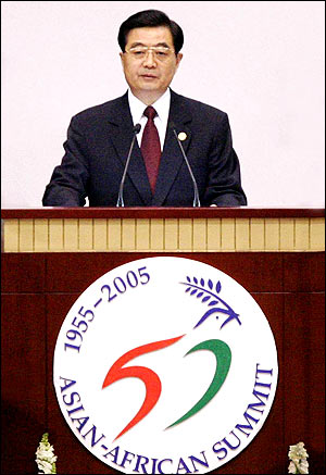 Выступая в Джакарте на саммите Азия-Африка, Ху Цзиньтао заявил, что сейчас перед странами этих континентов открыты исторические шансы на ускоренное развитие в связи с глобализацией экономики, научно-техническим прогрессом, перемещением производственных мощностей и растущей зависимостью стран друг от друга.
