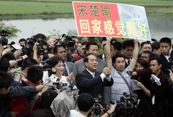 9 мая в первой половине дня председатель тайваньской партии Циньминьдан (Партии сближения с народом) Сун Чуюй и члены его семьи после более 50-летнего отсутствия вернулся на свою "малую родину" -- деревню Цзюйюй поселка Шэбу уезда Сянтань провинции Хунань Центрального Китая.