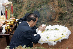 В 10:15 Сун Чуюй пришел на могилу своего прадедушки и совершил обряд поминания предков.