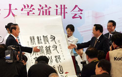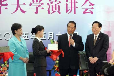 Сун Чуюй отметил стимулирующую роль Цинхуа в претворении в жизнь политики реформы и открытости. Из стен этого университета вышли около 300 высокопоставленных партийно-политических деятелей Китая, включая председателя КНР Ху Цзиньтао, а также большое число известных ученых. Сун Чуюй связал блестящие достижения Цинхуа с мудрым сочетанием западного научного практицизма и гуманистического духа китайской нации. "Опыт этого университета -- лучший опыт всего китайского народа", -- сказал Сун Чуюй.