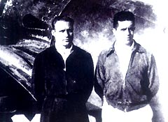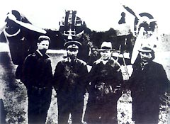 Советский авиатехник Камонин (первый слева) и переводчик Лебедев (второй справа) на ханькоуском аэродроме