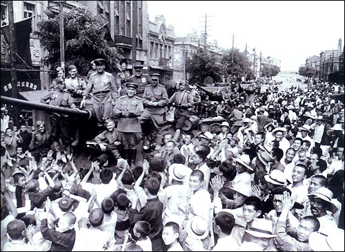 Советские танкисты в китайском городе Даляне. (Фото из фонда РИА ?Новости?)
