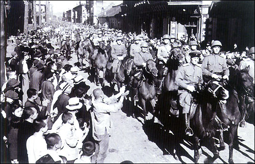 Советские войска вступают в Харбин. (Автор – Раскин С. Фото из фонда РИА ?Новости?)