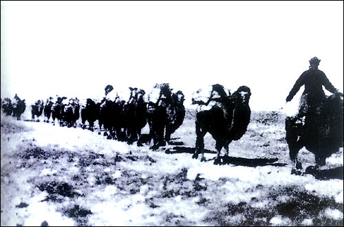 Караван верблюдов, доставляющий советские грузы в помощь Китаю