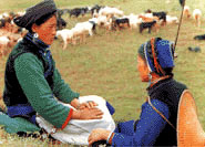 Живущие в разных местах пумийцы называют себя по-разному. Пумийцы из уездов Ланьпин, Лицзян и Юншэн называют себя “пуинми”, самоназвание пуми означает “белый человек”. В китайских исторических летописях пуми упоминаются под названиями “сифань” или “бацзюй”. После образования КНР, согласно пожеланию народности, национальности было дано единое название – пуми. В прошлом пумийцы населяли высокогорья Тибета, их кочевое племя обитало в приграничных районах Цинхая, Ганьсу, Сычуани. Примерно до VII в. пумийцы мигрировали на юго-запад нынешней Сычуани, стали одной из основных народностей района Сичан, а также вошли в тесный контакт с ханьцами и тибетцами. В эпоху династии Юань часть пумийцев последовала за монгольским войском на запад провинции Юньнань. Здесь национальность пуми стала неуклонно развиваться и усиливаться. Главное занятие пумийцев – сельское хозяйство. В прошлом производство было неразвитым ввиду того, что 90% возделываемых земель находились в горах, а методы хозяйствования были очень примитивными. После образования КНР, особенно после основания в 1988 г. Ланьпин-бай-пумийского автономного уезда, народность пуми добилась значительного развития в различных сферах.