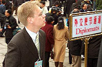 Перед началом заседания сессии ВСНП дипломаты и сотрудники иностранных посольств в Китае входят в Дом народных собраний.