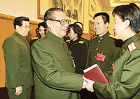 Председатель КНР, председатель Центрального военного совета (ЦВС) Китая Цзян Цзэминь принял во второй половине дня 10 марта участие в пленарном заседании делегации НОАК в рамках первой сессии ВСНП десятого созыва и выступил с речью.