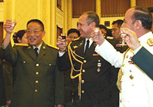 Заместитель председателя Центрального военного совета (ЦВС), член Госсвоета и министр обороны КНР Цао Ганчуань 31 июля на приеме, посвященном 76-й годовщине со дня создания Народно-освободительной армии Китая (НОАК) отметил, что разрешение тайваньского вопроса и осуществление полного объединения Родины - общее чаяние всего китайского народа, в том числе тайваньских соотечественников. Он подчеркнул, что будем и дальше придерживаться основного курса на мирное объединение по принципу ?одно государство – два строя?, выдвинутого Цзян Цзэминем восьмипунктного предложения относительно развития отношений между двумя берегами Тайваньского пролива на настоящем этапе и продвижения вперед процесса мирного объединения Родины.