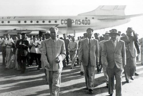 Встреча члена политбюро ЦК КПК Лю Шаоци в аэропорту с делегацией КПСС, прибывшей на Ⅷ съезд КПК. Пекин, сентябрь 1956 г.