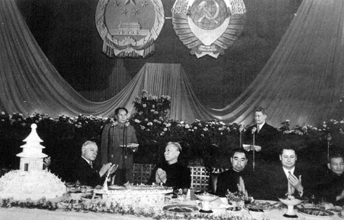 Банкет, устроенный Мао Цзэдуном в честь Председателя Президиума Верховного Совета К. Е. Ворошилова, находящегося в Китае с визитом. Пекин, апрель 1957 г.