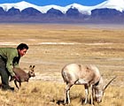 El a?o pasado, los valerosos hombres contra la caza furtiva salvaron una peque?a gamuza que agonizaba tendida al lado del cuerpo muerto de su madre y le llamaron “Ailing”. Al el a?o siguiente, como todavía no se había cercado el terreno para el pastoreo, esta peque?a gamuza sólo podía vivir y comer junto con los hombres. Debido a que Ailing no se recuperaba de su herida durante un a?o, el personal de investigación científica de la zona protegida venía a curarla atenta y concienzudamente en el proceso de recuperación y crecimiento, efectuando al mismo tiempo un importante estudio de la reproducción, crecimiento y desarrollo de esta especie de animales, examinando a fondo sus hábitos y características como cuánto crece el pelo fino en tal plazo o cuáles son sus características y hábitos de alimentación y descanso.