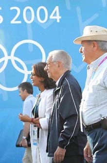 China ya tiene su bandera nacional izada en la Villa Olímpica de los Juegos de Atenas 2004 antes de recibir las bendiciones del ex presidente del Comité Olímpico Internacional (COI), Juan Antonio Samaranch, que deseó muchos éxitos al equipo chino.