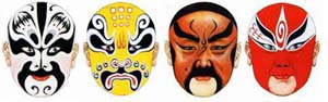 Los colores pintados en los rostros de los personajes simbolizan su temperamento, cualidad, rol y destino, he ahí una notable característica de la ópera de Beijing y asimismo la clave para comprender el argumento de la obra presentada. Hablando con sencillez, la cara roja significa ponderación y representa la lealtad y el coraje; la cara negra es neutral y sugiere vigor e inteligencia; la cara azul y la verde también son neutrales y representan a héroes de los bosques; la cara amarilla y la blanca son peyorativas y se aplican a hombres astutos e insidiosos; y la cara de color oro y la cara de color plata insinúan misterio y se aplican a dioses o demonios.
