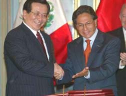 Los documentos fueron firmados por ministros y viceministros de ambos países en una ceremonia encabezada por el mandatario de Perú, Alejandro Toledo, y el vicepresidente chino Qinghong en el palacio de gobierno, en Lima.