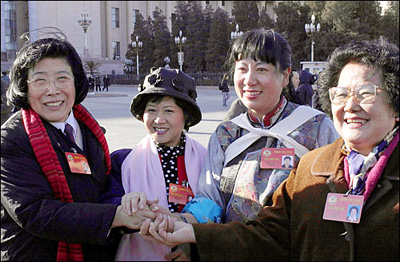El día 14 se clausuró la III Sesión de la X Asamblea Popular Nacional en el Gran Palacio del Pueblo en Beijing. En la foto, diputados saliendo del salón de reuniones.