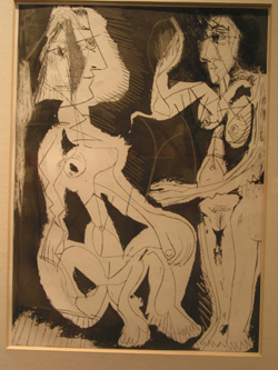 La exposición se divide en 8 secciones que van desde las pinturas de vestidos teatrales del “tricornio” a las ilustraciones realizadas por el pintor a partir de los poemas del escritor del Siglo de Oro espa?ol Luís de Góngora, pasando por las aguatintas realizadas en 1957 para ilustrar el libro “l(fā)a Tauromaquia. El Arte de Torear” de José Delgado (tratado sobre el toreo y el mundo de los toros), las ilustraciones realizadas en 1949 para ilustrar una edición de “Carmen”, las ilustraciones para una edición del clásico de 1499 atribuido a Fernando de Rojas “La Celestina”, los grabados realizados en 1968 para ilustrar la comedia en tres actos “El Cocu Magnífico” del escritor Fernand Crommelynck, o las aguafuertes realizadas en 1942 para ilustrar la obra “Historia Natural” de Geoges Louis Lequerc o las ilustraciones realizadas para Pierre de Reverdy.